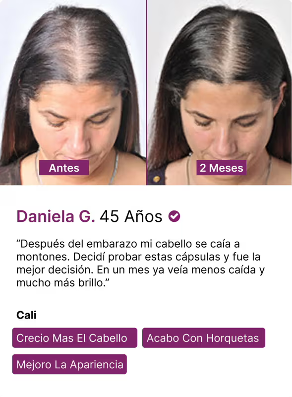 Nuestra fórmula incluye Biotina 10,000 mcg, conocida por fortalecer el cabello y estimular su crecimiento; Colágeno Hidrolizado, que mejora la elasticidad y aporta brillo; y OptiMSM®, un compuesto que nutre profundamente el cuero cabelludo. Cada cápsula está diseñada para ofrecerte el cuidado y la nutrición que tu cabello necesita día a día, con resultados visibles y duraderos.